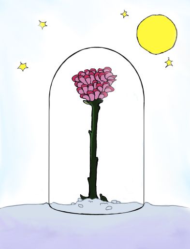 Mali princ ružu zatiče na svojoj planeti. Kako nam otkriva pilot, radi se o cvijetu koji je proklijao jednog dana iz sjemena dospjelog neznano otkuda. Iako sama ruža tvrdi da je stara koliko i Sunce, Mali princ prvi put susreće jedno takvo biće. Lako uočavamo da se ruža u izvjesnom smislu služi njegovim neiskustvom i stoga mu odmah na početku predočava svoju jedinstvenost i postavlja se kao najdivnije biće koje bi ovaj na svijetu mogao sresti, ali i kao najosjetljivije, čime mu šalje poruku da je mora njegovati ukoliko želi da ona preživi na njegovoj planeti. Mali princ tako stiče utisak da je upravo ruža ta koja daje ljepotu njegovoj planeti i samim tim povećava i značaj njega kao vladara jedne takve planete. Ruža nastavlja da muči princa svojom, kako nam pilot objašnjava, „nesigurnom taštinom“. Stalno ga upozorava na svoje trnje, ne dozvoljavajući mu da joj se previše primakne. Istovremeno mu skreće pažnju na svoju krhkost, čime neprestano uvećava strah Malog princa da bi je mogao izgubiti, pa ovaj na kraju nema izbora do da je stavi pod stakleno zvono. Takav pristup sve više guši ružu, koja ga na kraju na rastanku moli da je izloži vjetrovima i drugim potencijalnim opasnostima, jer je ona ipak divlji cvijet. Zapažanje Malog princa o njihovom odnosu, koje je uslijedilo nakon što je napustio svoju planetu, otkriva pravu prirodu njihovih uloga u datoj relaciji.