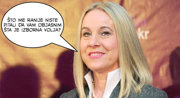 55. Vlada izborne volje – Vlada čiji karakter može da dešifruje profesorka književnosti, ekološki aktivista, pobornik referenduma protiv bušenja Jadrana, ekspert za: matrijarhat, spoljnu politiku, cijepanje atoma i srednjoškolski aktivizam. Znate koja…