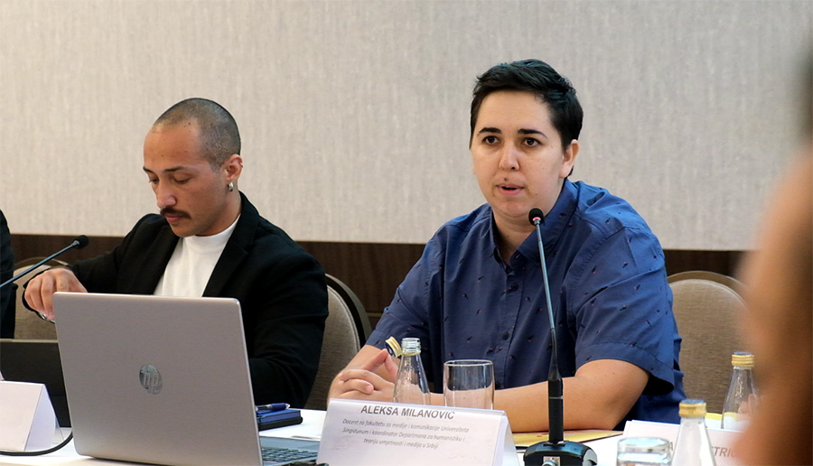 Docent na Fakultetu za medije i komunikacije Univerziteta Singidunum i koordinator Departmana za humanistiku i teoriju umjetnosti i medija u Srbiji, Aleksa Milanović, predstavio je cjelokupne rezultate analize izvještavanja i osvrnuo se na više sektora koji bi trebalo da se pozabave ovim pitanjem.