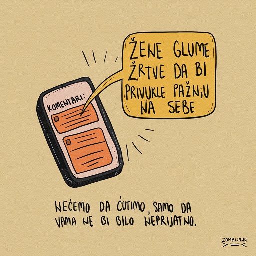 Na društvenim mrežama, ispod novinskih članaka i u svakodnevnom govoru, čuju se komentari: šta je obukla, koliko je popila, zašto je išla tamo, koliko je partnera imala ranije? Zašto nije (odmah) prijavila?