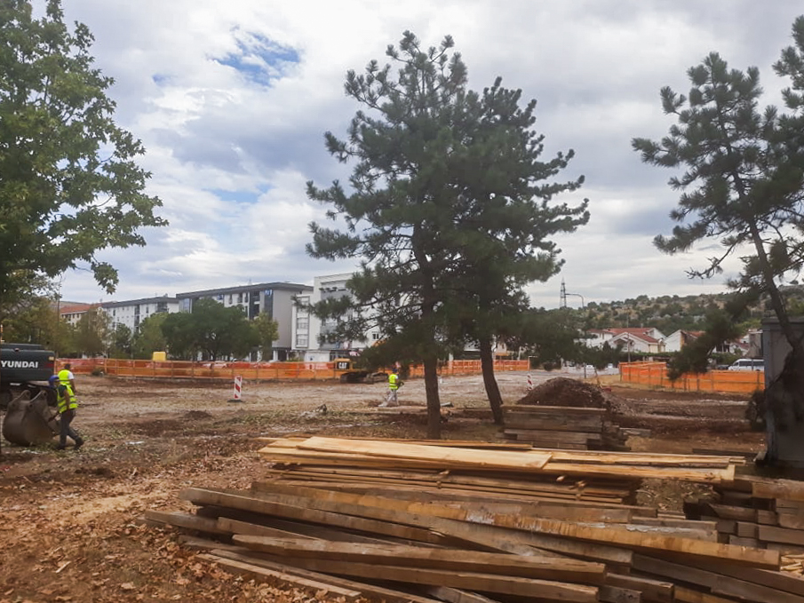 Zbog izgradnje kružnog toka na raskrsnici ulica Meše Selimovića i Blaža Jovanovića u Bloku 5 u toku je sječa stabala starih preko 40 godina.